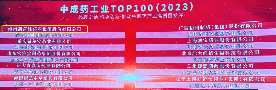 会上,还发布了“2023中成药工业TOP100”榜单,EVO视讯药业集团荣耀上榜。